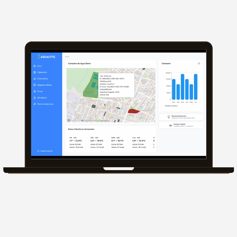 Actualmente Aqualytic está enfocado en apoyar a municipalidades en la gestión de plazas y parques urbanos, pero nuestra solución es flexible y escalable.